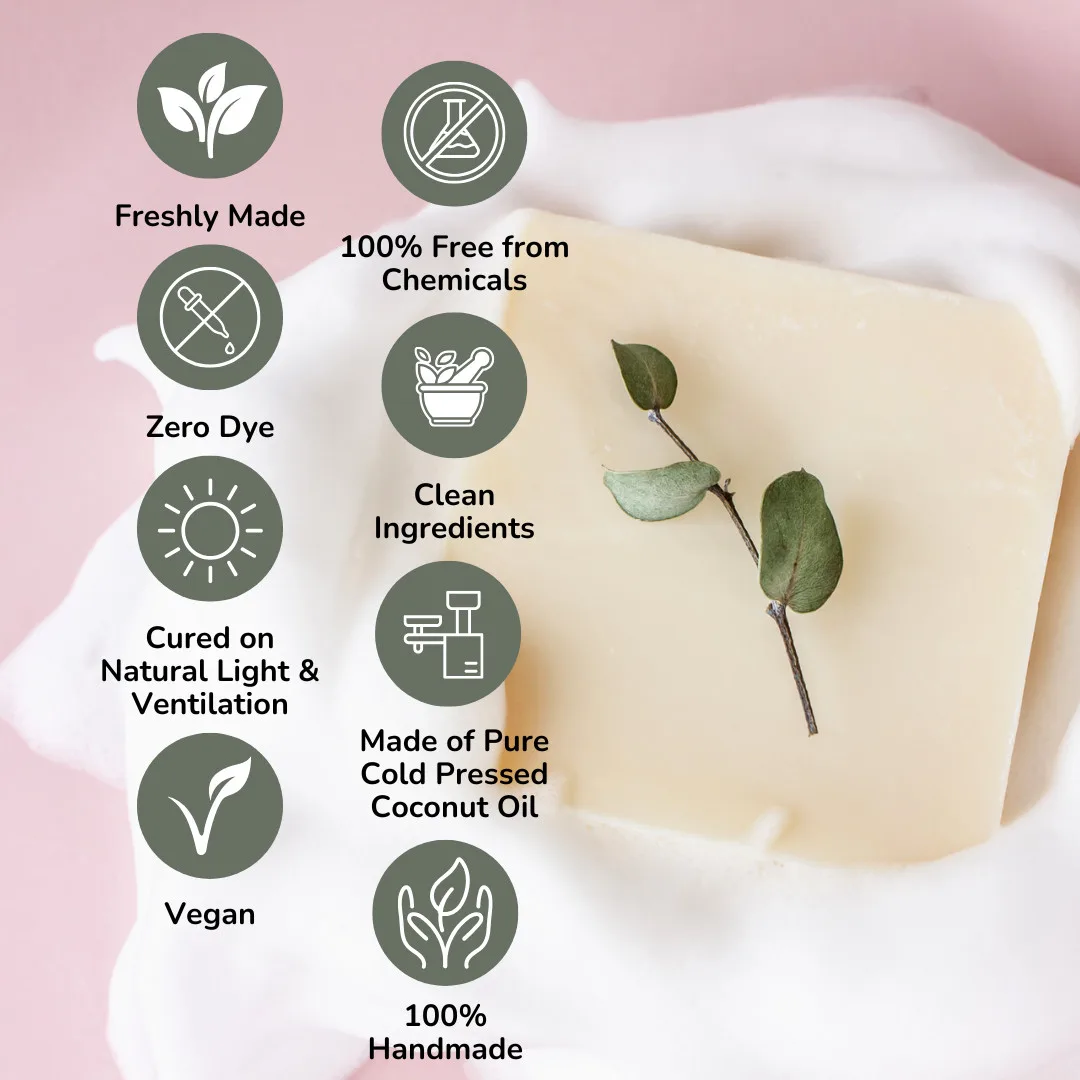 This traditional method preserves the natural benefits of the ingredients used like oils and herbs. Creates natural glycerin through coconut oil, rich lather. Each soap is cured for 30 to 45 days in natural ventilation and sun light.